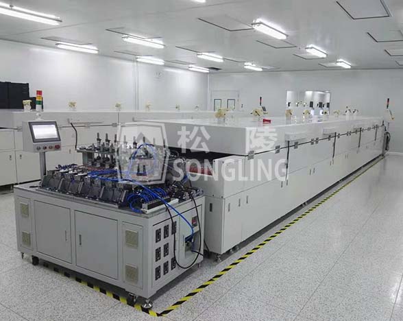 該產品主要用于LED支架除濕烘烤,取代傳統的單體烘烤箱模式,進出料口對接上下工序自動物流線,極大的提供了生產效率,人員配置也大幅降低。